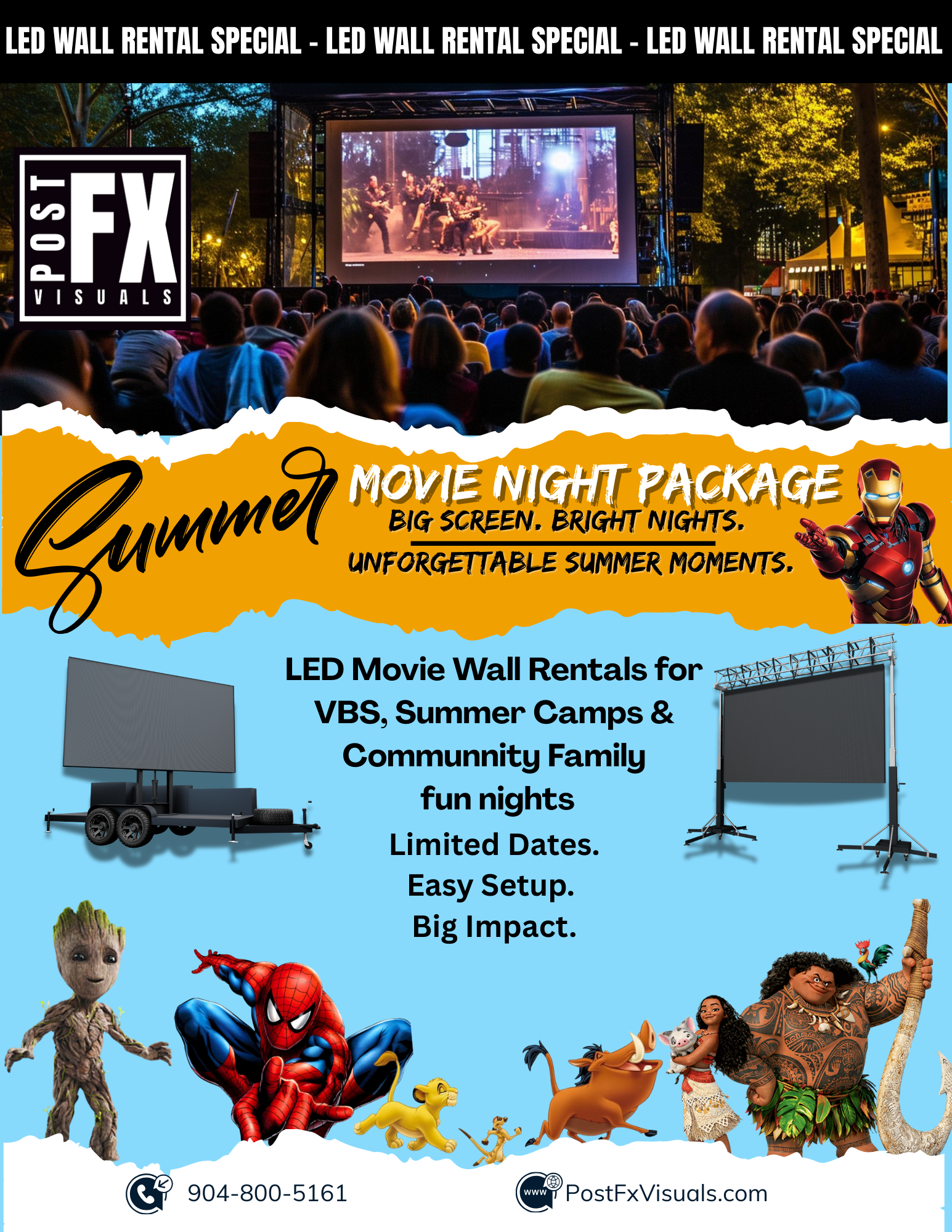 PostFX Visuals delivers high-resolution LED wall rentals for concerts, conferences, weddings, expos, and more — right here in Northeast Florida and across the country.
